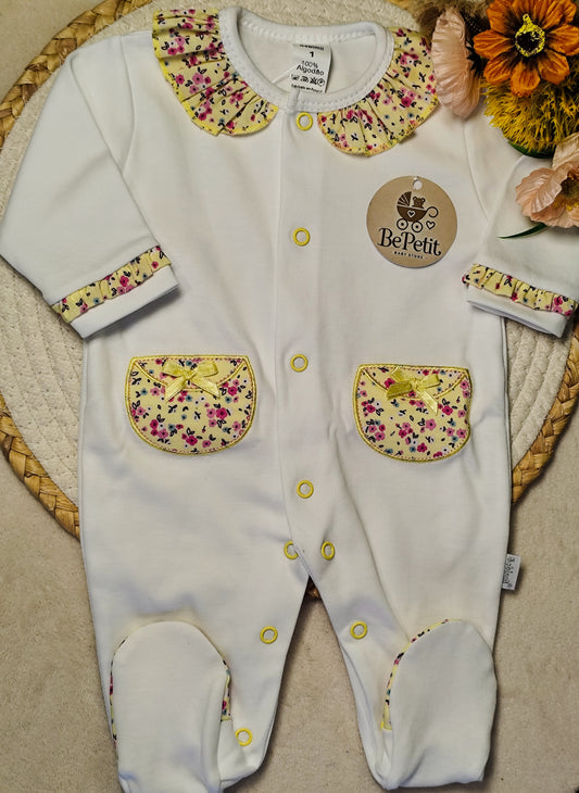 Babygrow algodão Branco com amarelo floral