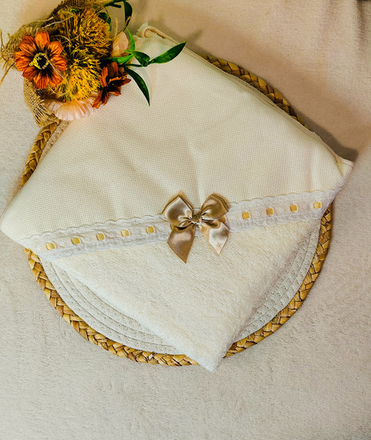 Conjunto Toalha + Fralda em Algodão urso cetim