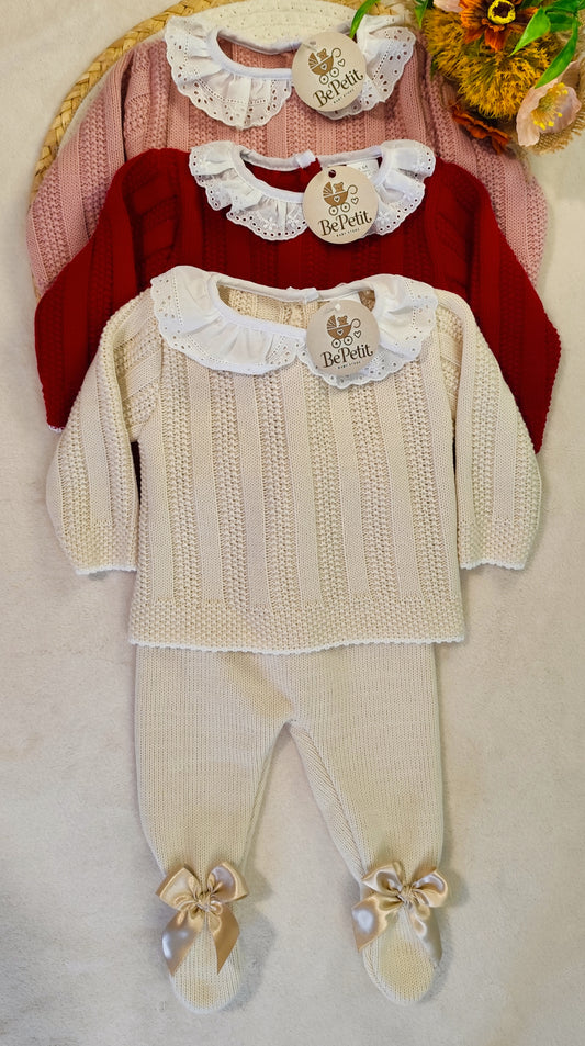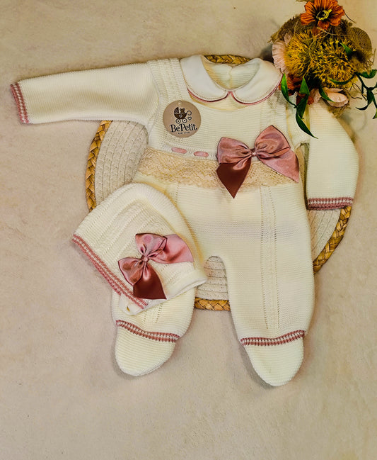Em promoçãoConjunto malha 3 peças gola laço cetim