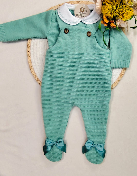 Jardineira com camisola laços nos pés