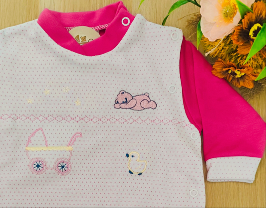 Babygrow para Bebé Rosa com Bordado de Coelhinho