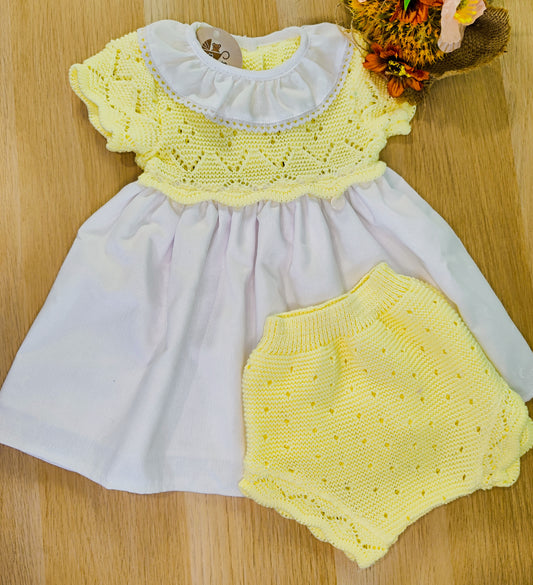Conjunto Bebé Tricot & Tecido – Amarelo e Branco