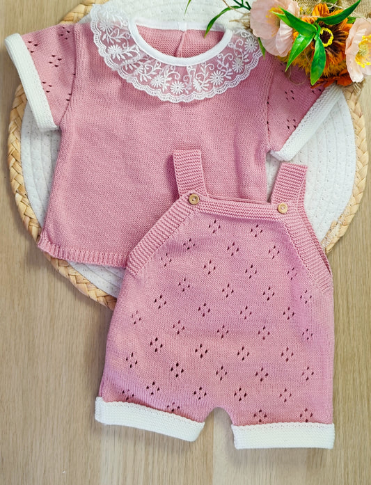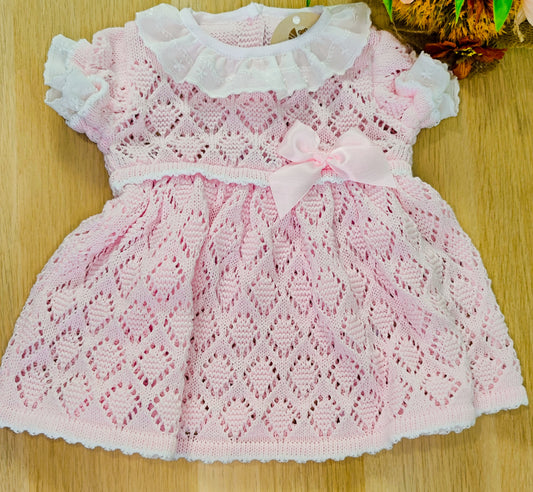 Conjunto Vestido Tricot Rosa Bebé
