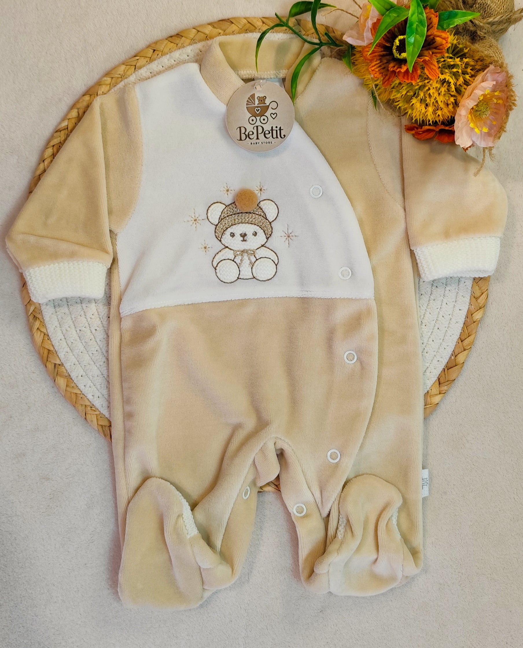Este babygrow em veludo é simplesmente encantador, toque ultra suave e um acabamento delicado que transmite todo o cuidado que o seu bebé merece.