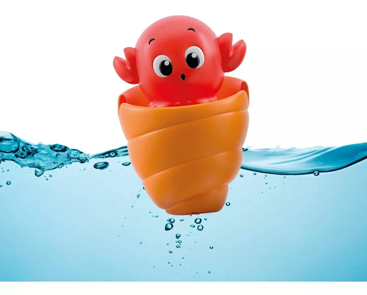 Efeito Surpresa – Ao mergulhar na água, o caranguejo fofinho aparece de dentro da concha, despertando a curiosidade do bebê!