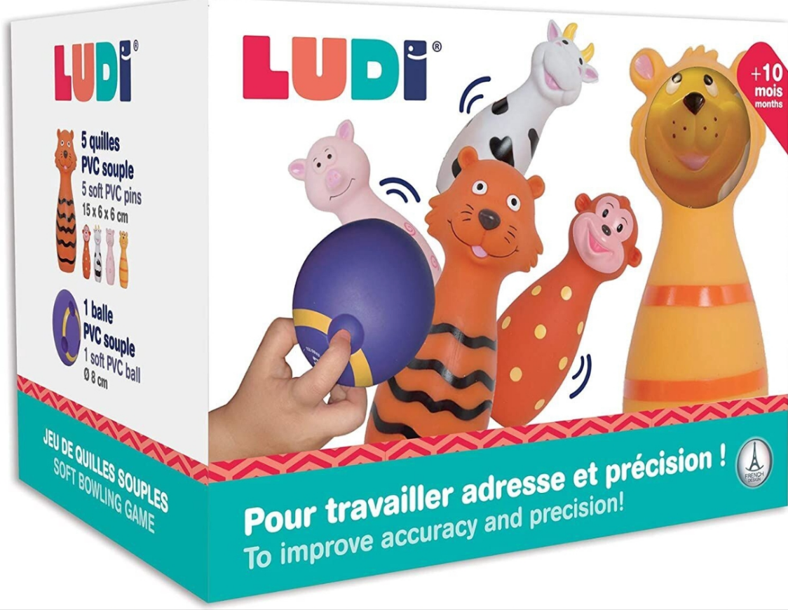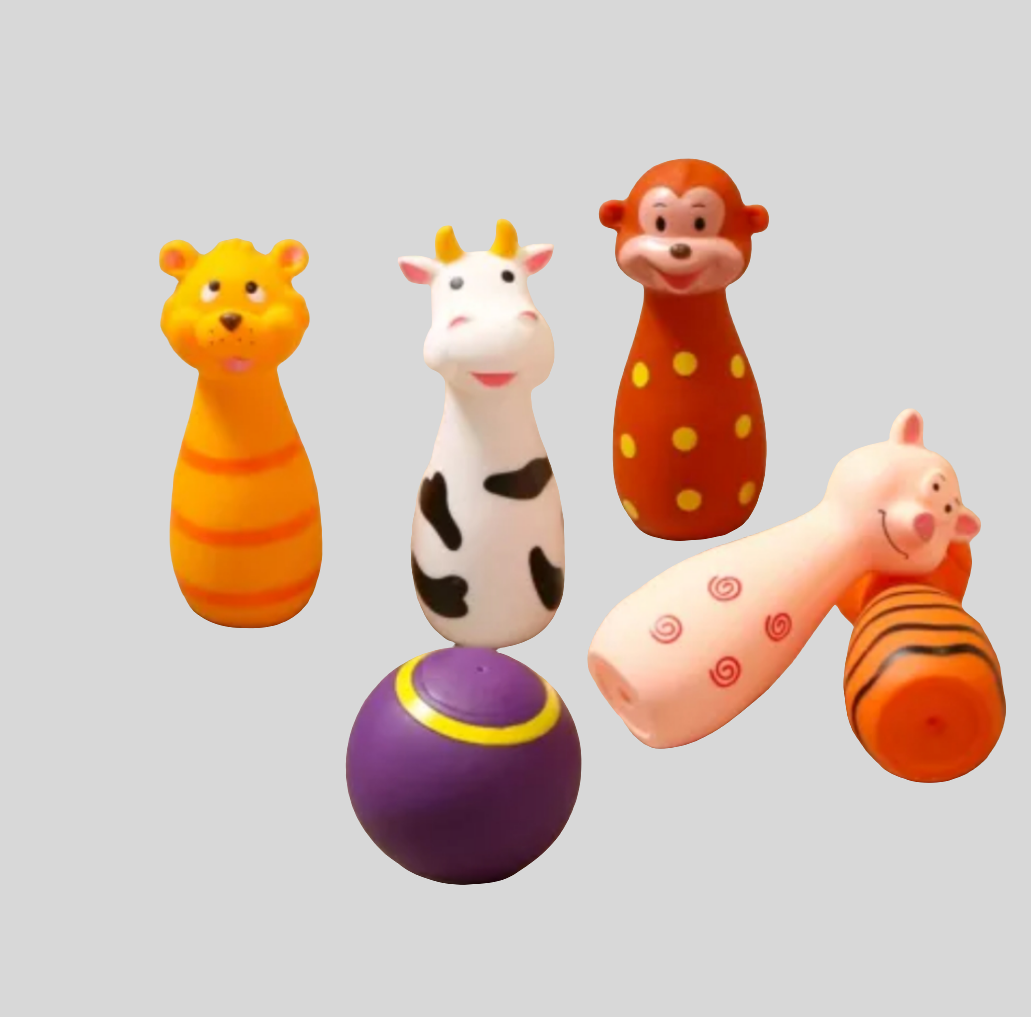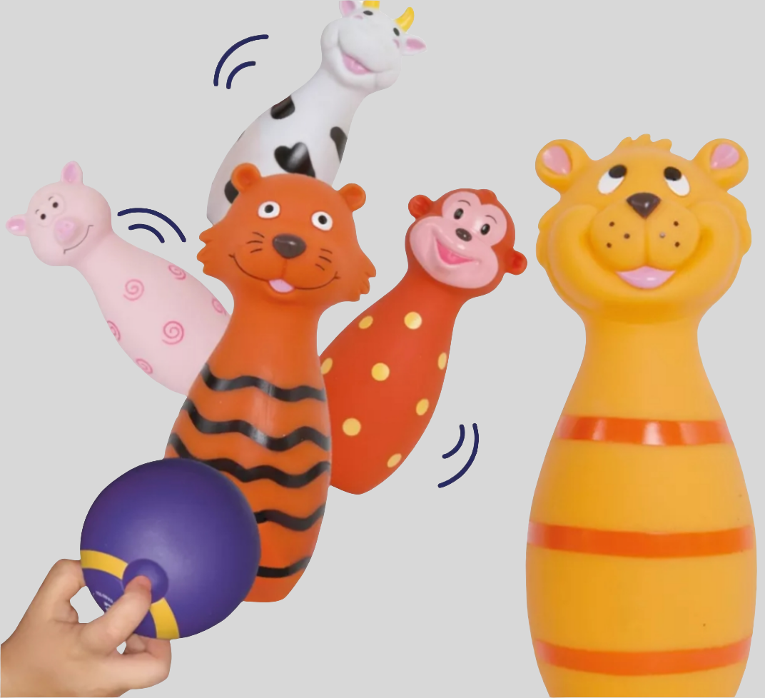 As crianças se divertem derrubando os 5 pinos com a bola, assim como no boliche! Mirar, rolar um objeto e derrubar os pinos ajudam a desenvolver habilidades enquanto se divertem!