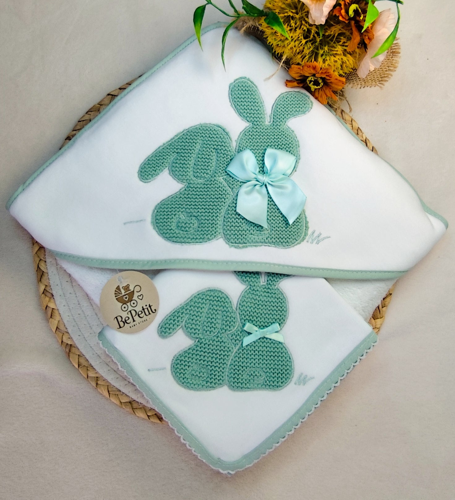 Conjunto Toalha + Fralda em Algodão coelhinho