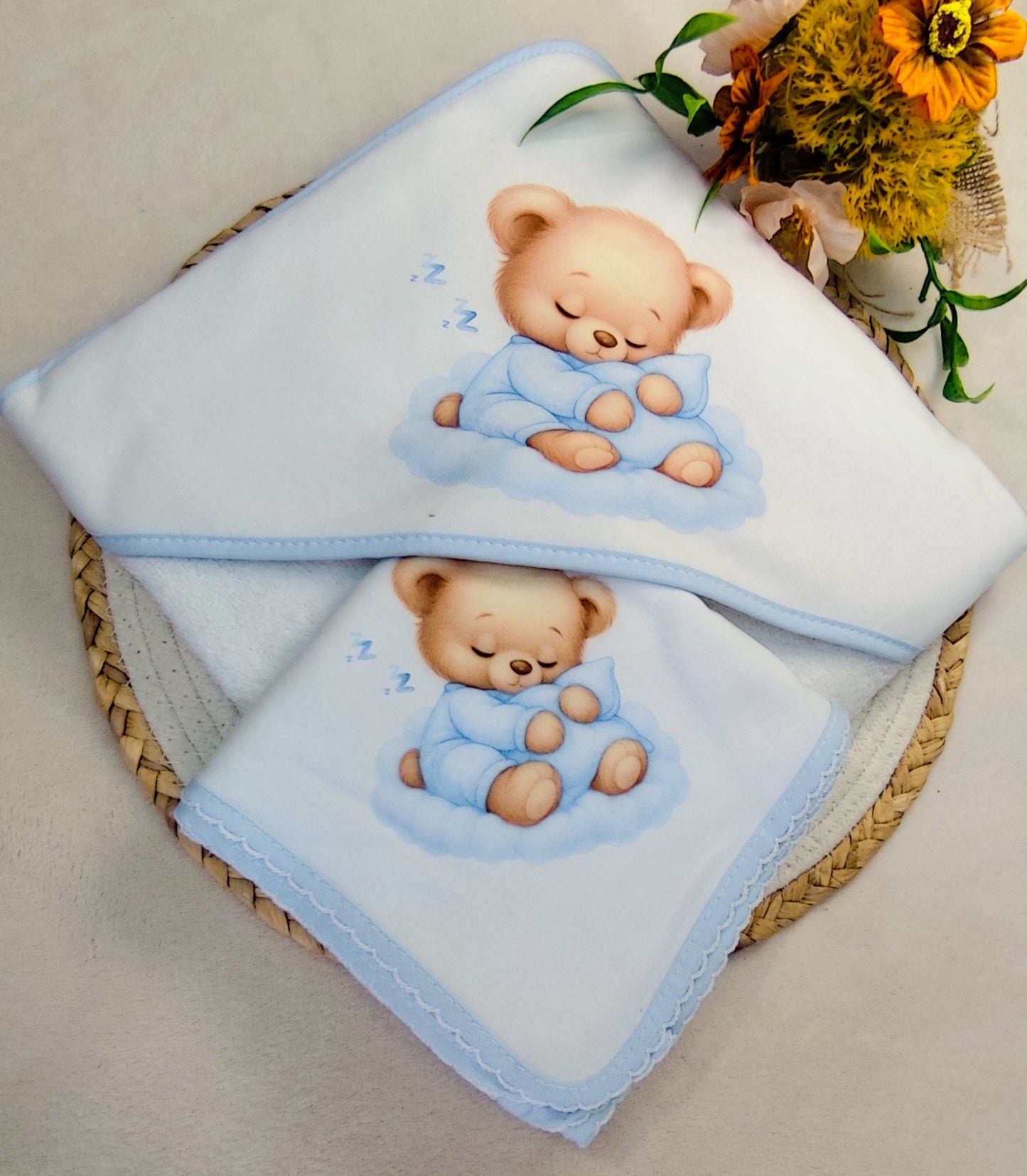 Conjunto Toalha + Fralda em Algodão ursinho