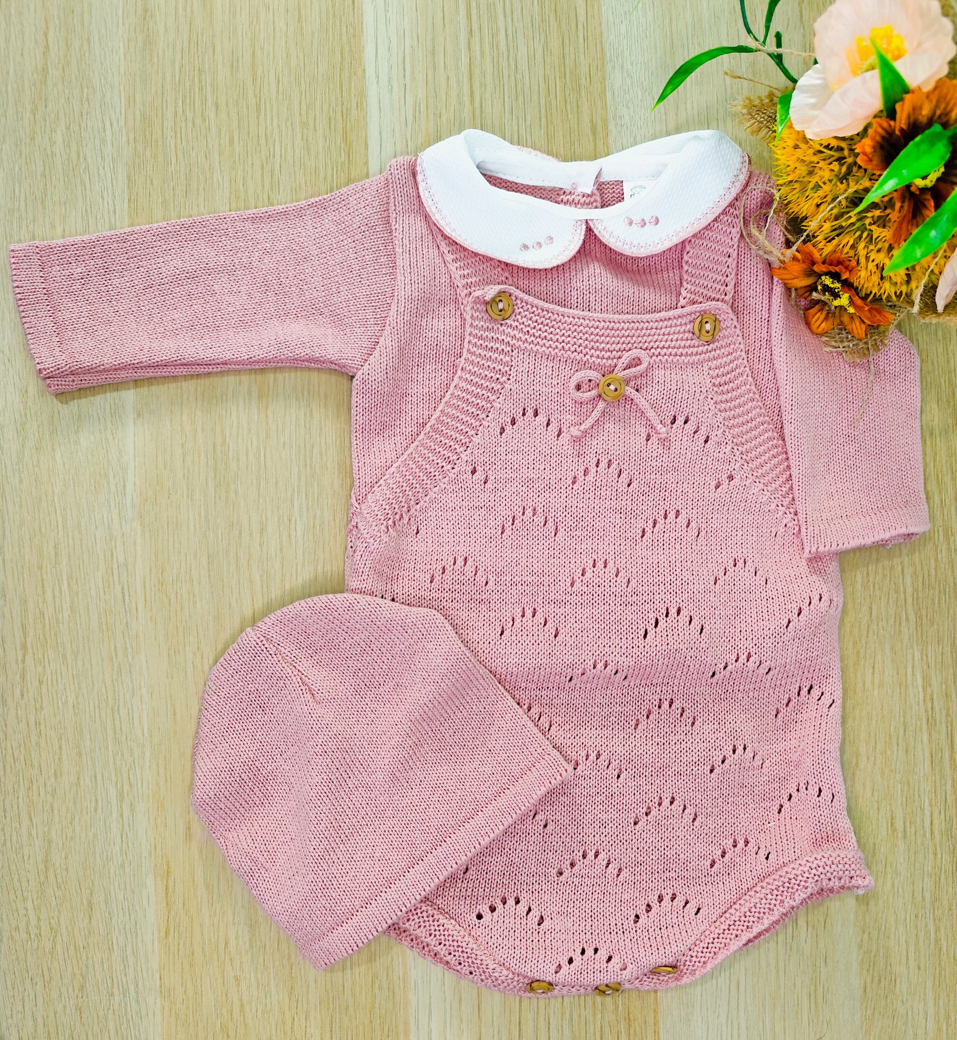 Envolva o seu bebé em ternura com este delicado conjunto quentinho de 3 peças: fofo, camisola e touca.