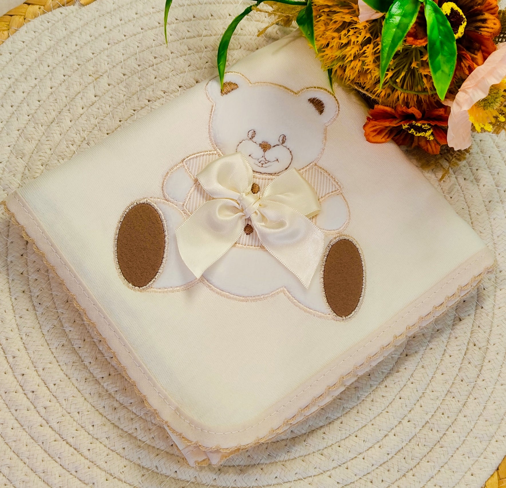 🌿 Fralda com bordado urso 0,60 x 0,60 m