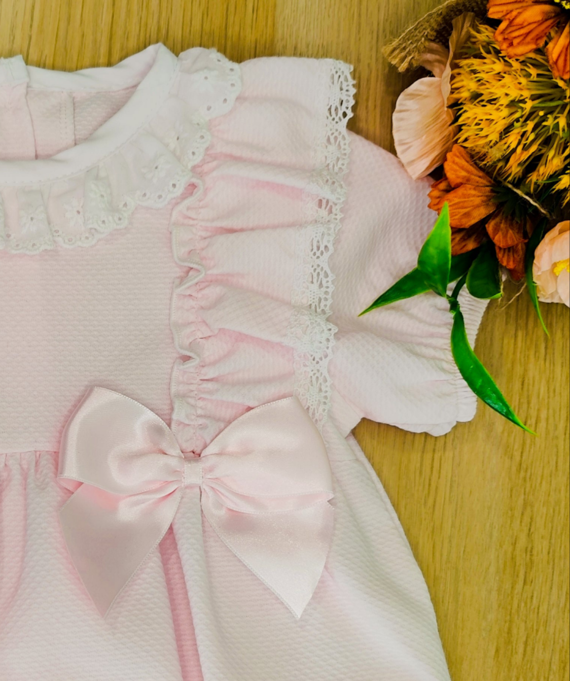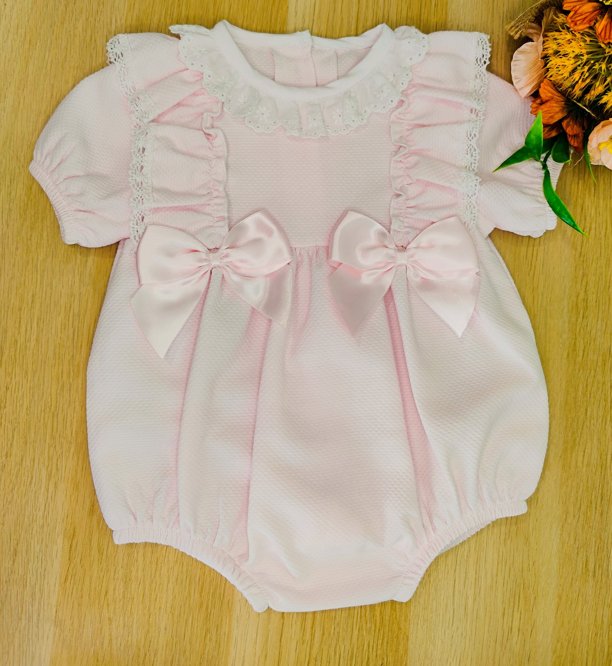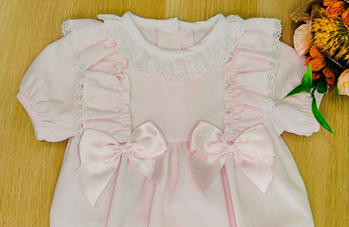Este fofo macacão rosa bebé é a escolha perfeita para momentos especiais e memoráveis. Com rendinhas suaves, tecido 100% Algodão, folhos encantadores e dois laços em cetim que fazem derreter qualquer coração, é impossível resistir a tanta ternura!