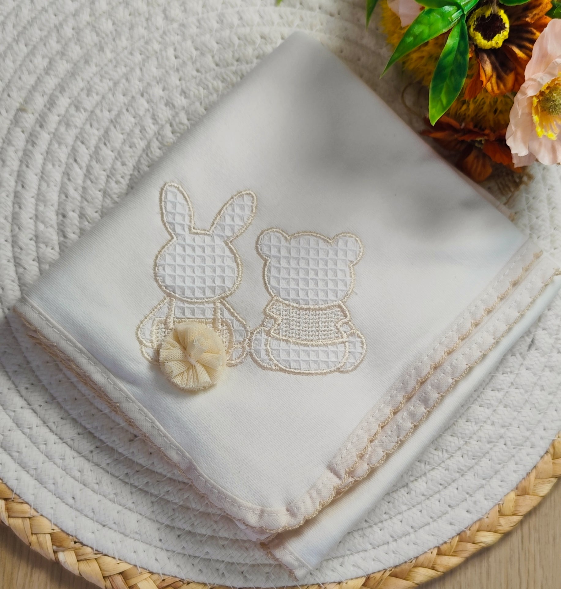 Fralda em 100% algodão com bordados é perfeito para os primeiros momentos do seu bebé. Conforto, charme e um toque especial para o dia-a-dia.