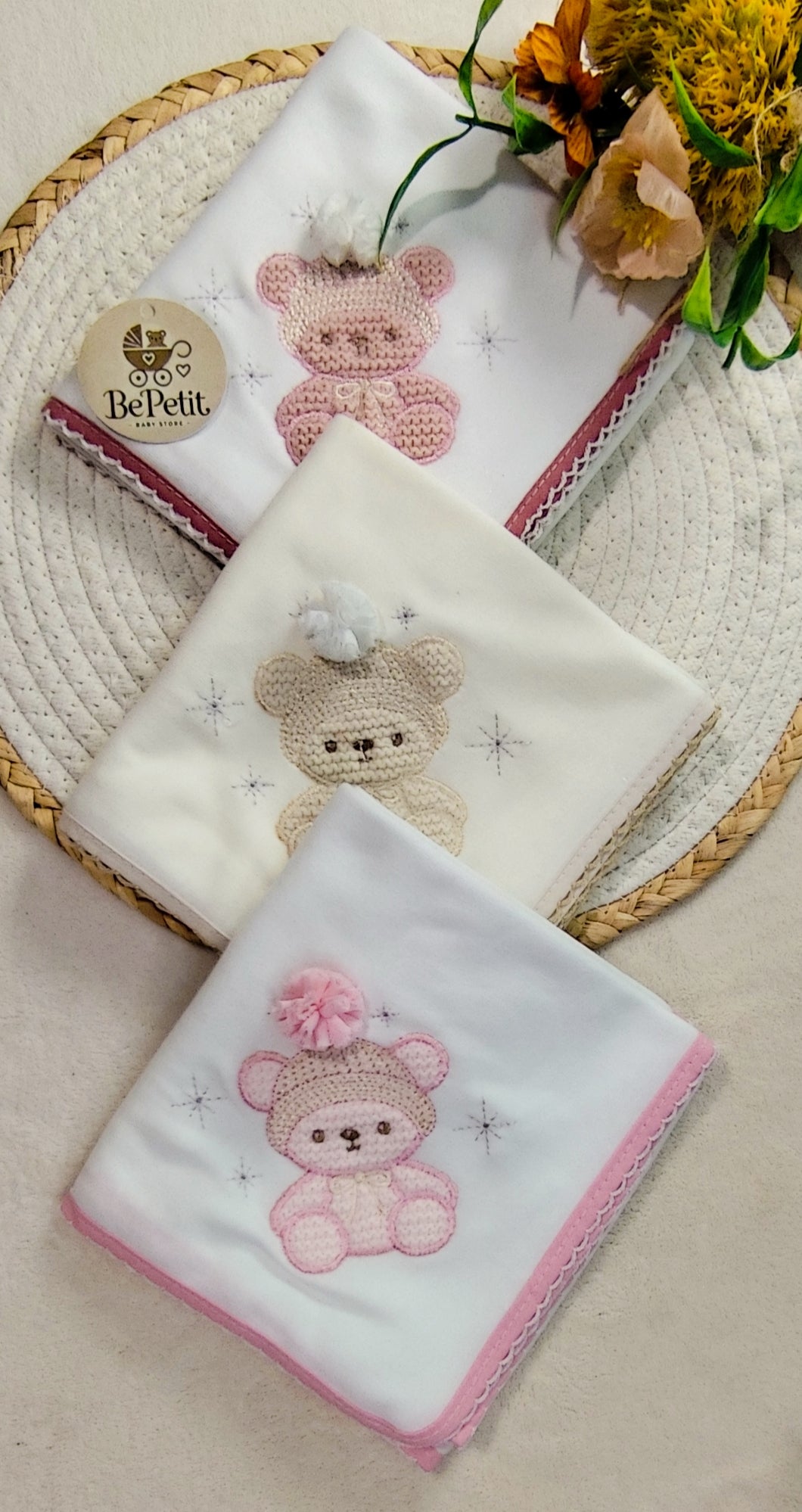 Fralda em 100% algodão com bordados é perfeito para os primeiros momentos do seu bebé. Conforto, charme e um toque especial para o dia-a-dia.