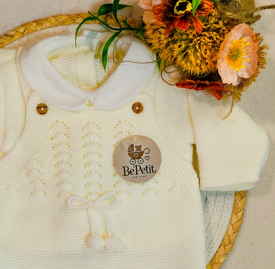 O conjunto perfeito para o seu bebé: três peças em malha suave, ideais para conforto e estilo desde os primeiros meses. Cores delicadas e design encantador para momentos especiais.