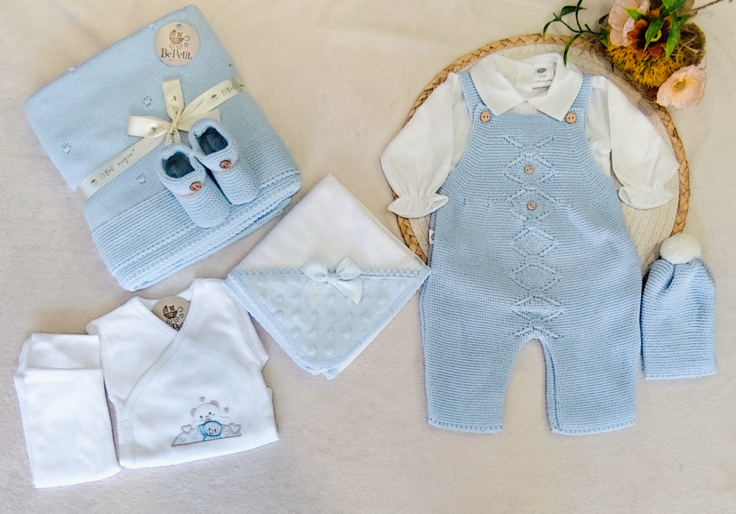 👶 Conjunto de malha 3 peças (0-3 meses) – fofura e conforto no mesmo detalhe
