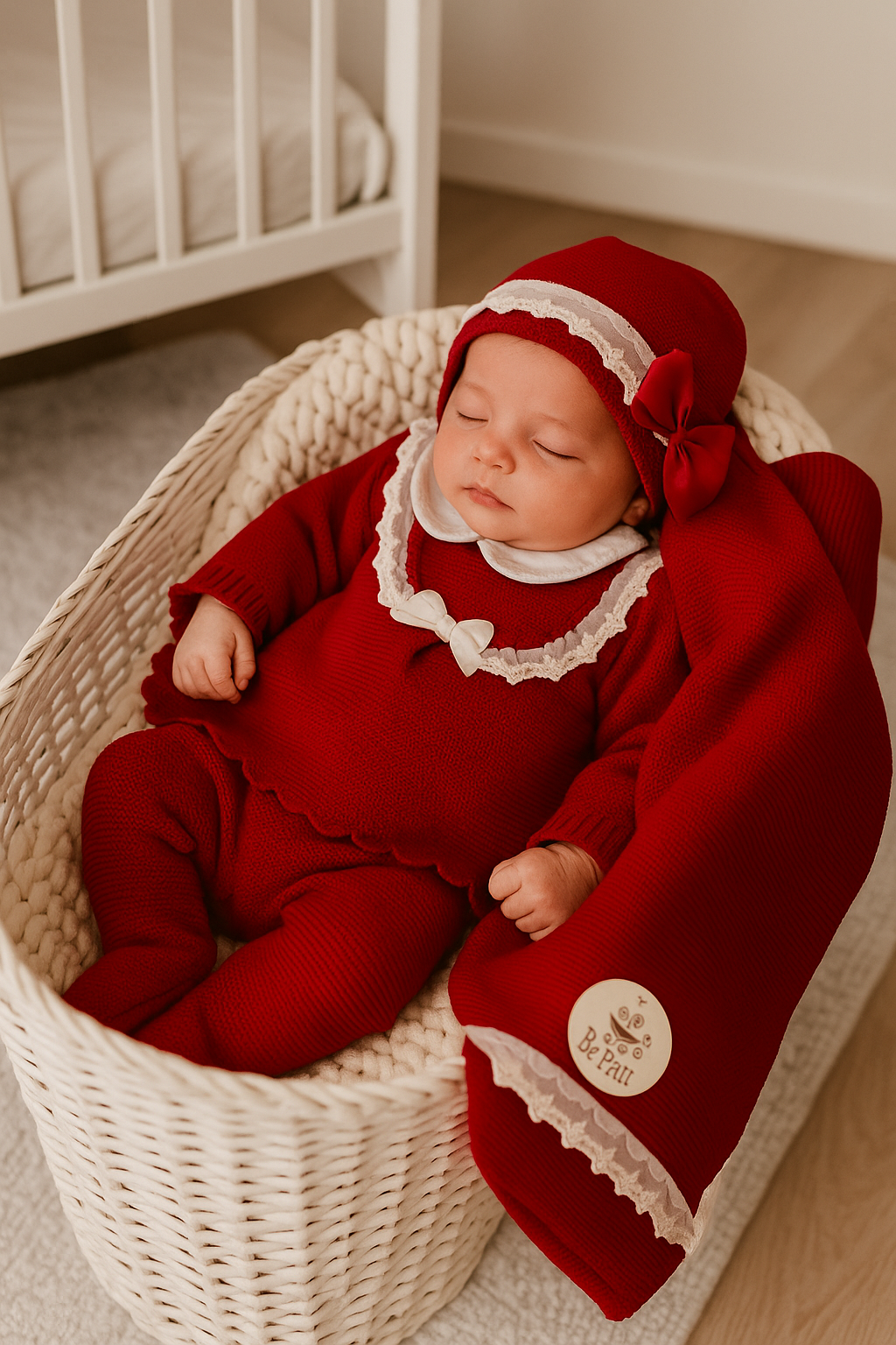 Conjunto malha 3 peças gola laço cetim