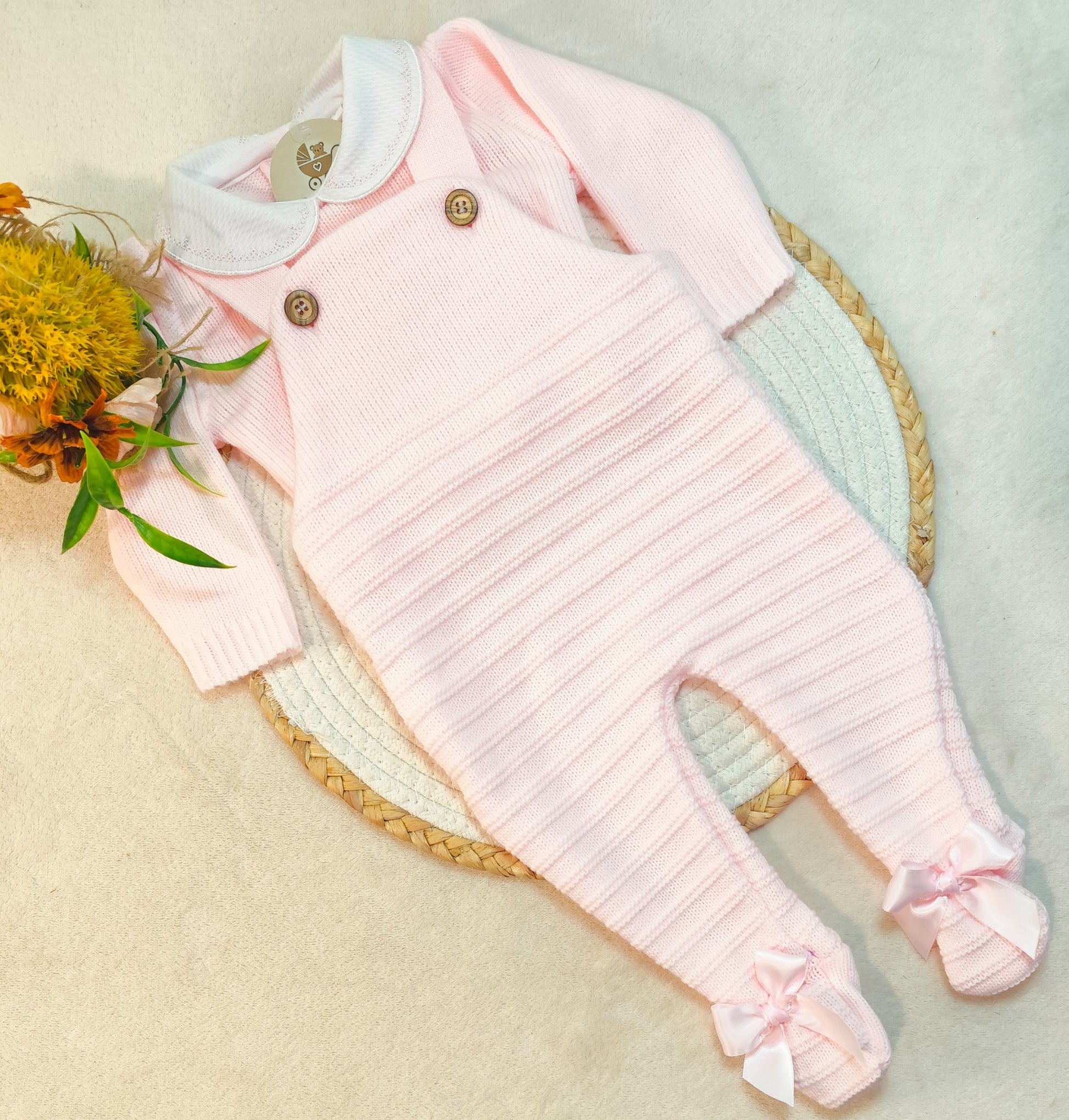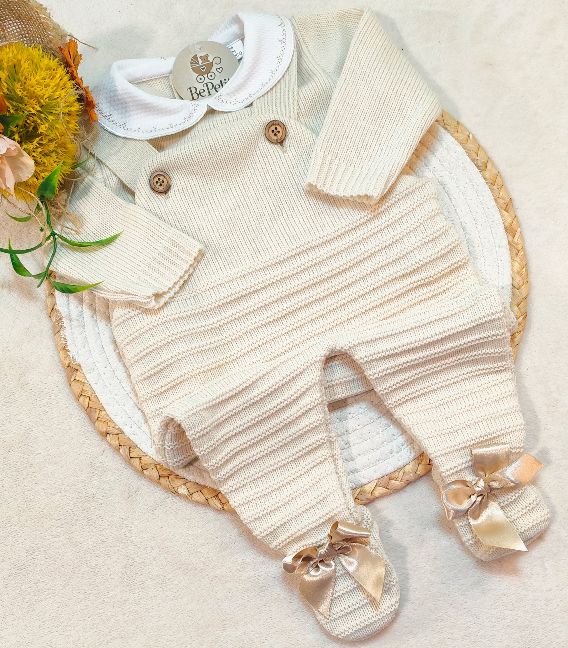 O conjunto perfeito para o seu bebé: Duas peças em malha suave, ideais para conforto e estilo desde os primeiros meses. Cores delicadas e design encantador para momentos especiais.